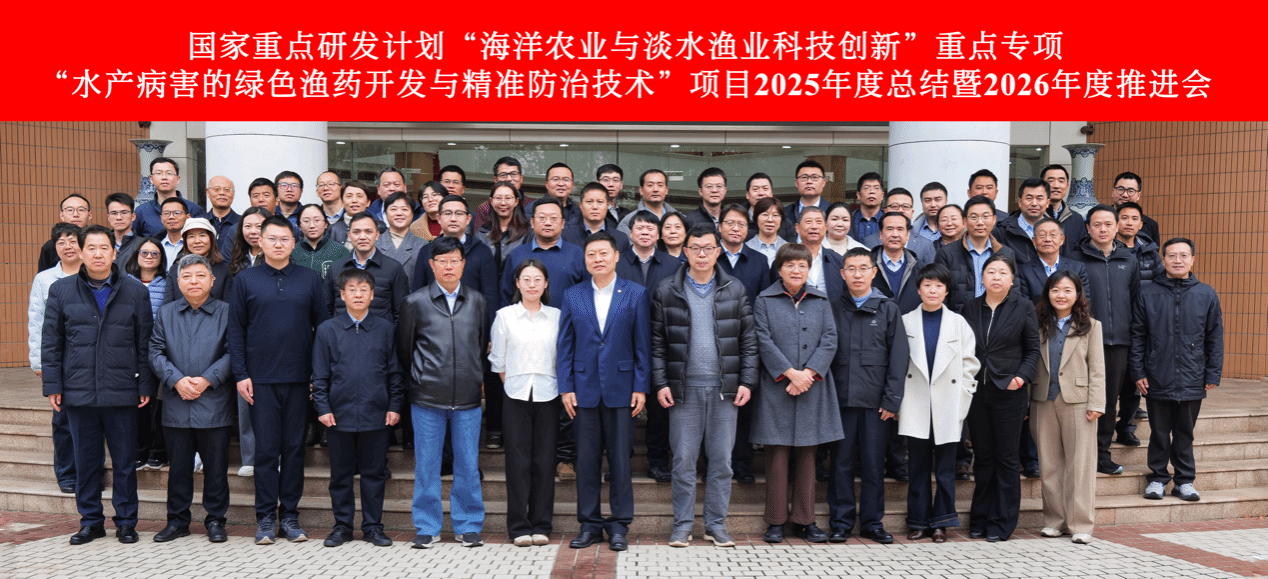 2月28日至3月1日,由中国水产科学研究院黄海水产研究所牵头的国家重点研发计划“海洋农业与淡水渔业科技创新”重点专项“水产病害的绿色渔药开发与精准防治技术”项目2025年度总结暨2026年度推进会在上海召开,农业农村部科技发展中心项目专员丰程程、中国水产科学研究院项目专员贾宜珺、中国兽医药品监察所张存帅研究员、四川农业大学汪开毓教授、浙江省淡水水产研究所沈锦玉研究员、华东理工大学刘琴教授、宁波大学李成华教授、江苏省海洋水产研究所万夕和研究员、上海海洋大学吕利群教授、中国水产科学研究院黄海水产研究所副所长叶乃好研究员、华东理工大学副校长赵黎明教授及项目组成员等60余人参会。会议由黄海所科研处处长刘志鸿研究员主持。