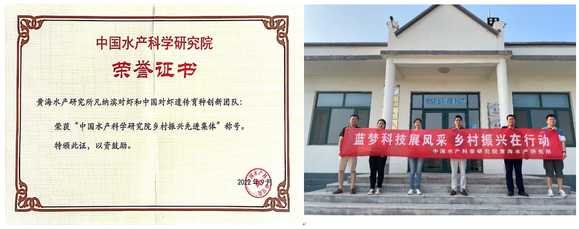 近日,中国水产科学研究院黄海水产研究所凡纳滨对虾和中国对虾遗传育种创新团队、黄河三角洲乡村振兴服务团队等2个团队和陈碧鹃、罗坤、梁友等3名同志分别荣获中国水产科学研究院乡村振兴先进集体和先进个人荣誉称号。据了解,全院共有15个团队和30名同志荣获先进集体和先进个人荣誉称号。