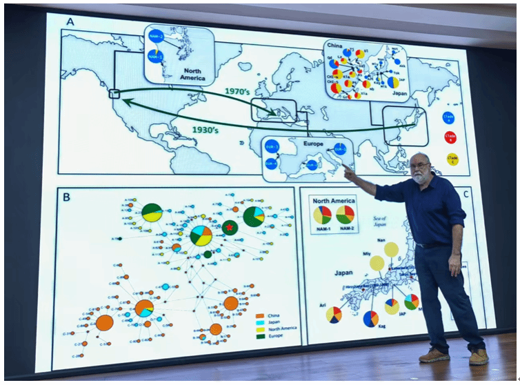 John Humphreys教授做了题为“The Manila Clam, Ruditapes philippinarum: Worldwide and in Britain”的学术报告,主要介绍了世界各地菲律宾蛤仔的地理分布、育种和养殖现状,以及蛤仔种质资源受到环境因素和鸟类捕食等方面影响的最新研究进展,引起了参会人员的广泛兴趣。John Humphreys教授还与参会人员就菲律宾蛤仔世界分布、壳色选育等问题展开了深入探讨和交流,现场气氛热烈。会后,John Humphreys教授还参观了黄海所种质资源与工程育种研究室。