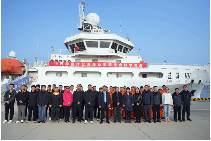 11月9日,中国水产科学研究院黄海水产研究所“蓝海101”号调查船启航执行“2025年度中西印度洋公海渔业资源调查”航次任务。出航前,黄海所副所长王骞及相关部门负责人员到码头为全体出海人员送行。