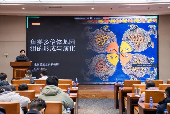 胡鹏教授作了题为“基因组学技术研发与鱼类抗性遗传机制解析”的学术报告,系统阐述了母源因子在胚胎低温胁迫存活中的关键功能及中性粒细胞免疫状态转变的表观调控机制。王堃教授作了题为“脊椎动物宏进化的遗传基础”的学术报告,详细介绍了趋同演化、基因组创新及基因功能重塑等关键机制,并为“间断平衡”演化理论提供了重要的遗传学证据。杜康研究员作了题为“鱼类多倍体基因组的形成与演化”的学术报告,指出了多倍体演化与水产的重要联系,阐明了同源多倍体和异源多倍体的形成方式和后续演化轨迹的差异以及可能的原因。三场报告引起了与会科研人员和研究生的热烈反响,大家围绕感兴趣的问题展开了深入交流与讨论,现场学术氛围浓厚。