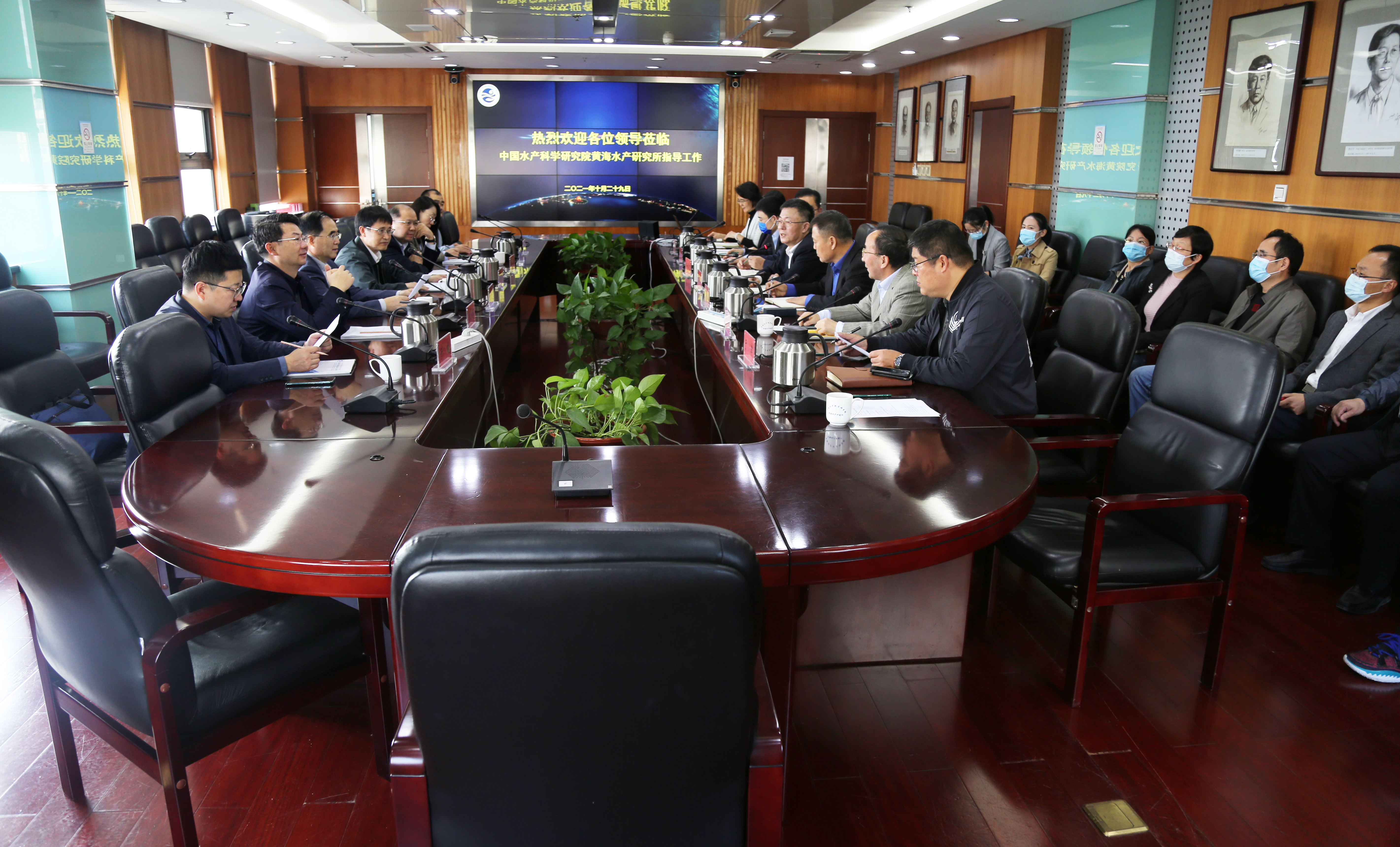 10月29日,农业农村部渔业渔政管理局局长刘新中带队到中国水产科学研究院黄海水产研究所考察调研。中国水产科学研究院院长王小虎、青岛市海洋发展局局长焦明伟参加了本次调研活动。黄海水产研究所所长金显仕,副所长孔杰、辛福言以及相关管理部门、科研部门负责人员接待了刘新中局长一行,并进行了座谈。