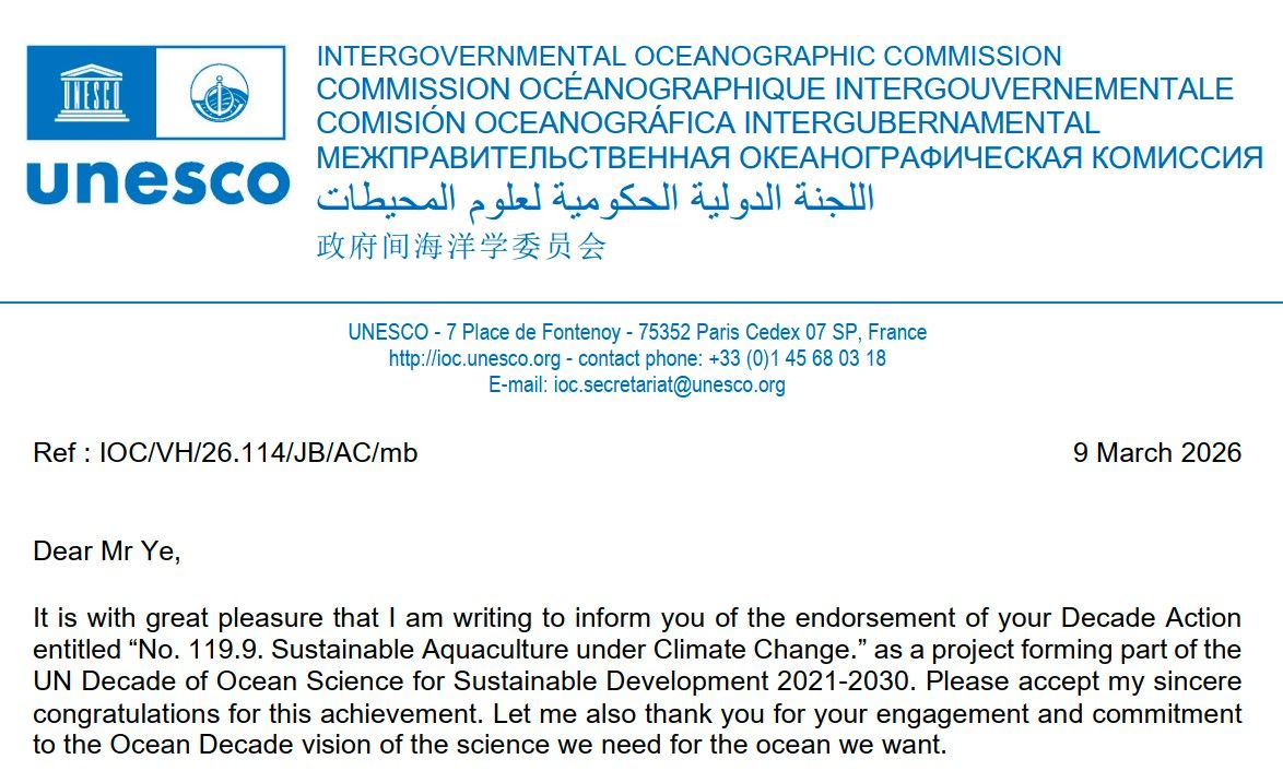 近日,由中国水产科学研究院黄海水产研究所海水养殖生物育种与可持续产出全国重点实验室叶乃好研究员牵头组织的国际合作研究计划——“气候变化下的可持续水产养殖”(Sustainable Aquaculture under C...