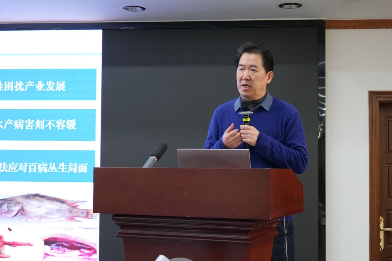 2月28日至3月1日,由中国水产科学研究院黄海水产研究所牵头的国家重点研发计划“海洋农业与淡水渔业科技创新”重点专项“水产病害的绿色渔药开发与精准防治技术”项目2025年度总结暨2026年度推进会在上海召开,农业农村部科技发展中心项目专员丰程程、中国水产科学研究院项目专员贾宜珺、中国兽医药品监察所张存帅研究员、四川农业大学汪开毓教授、浙江省淡水水产研究所沈锦玉研究员、华东理工大学刘琴教授、宁波大学李成华教授、江苏省海洋水产研究所万夕和研究员、上海海洋大学吕利群教授、中国水产科学研究院黄海水产研究所副所长叶乃好研究员、华东理工大学副校长赵黎明教授及项目组成员等60余人参会。会议由黄海所科研处处长刘志鸿研究员主持。