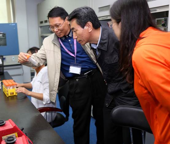 崔利锋院长先后实地考察了水产生物技术与基因组研究室、国际动物卫生组织(OIE)参考实验室、国家水产品质量监督检验中心以及渔业环境与生物修复研究室,听取了相关负责人的工作汇报,与科研人员进行了面对面交流。他肯定了黄海所在推动我国渔业科技进步中所起的积极作用,并鼓励大家继续面向国家和产业的需求,主动适应新常态下的渔业发展,不忘初心,攻坚克难,在推动现代渔业转型升级中做出新的更大贡献。