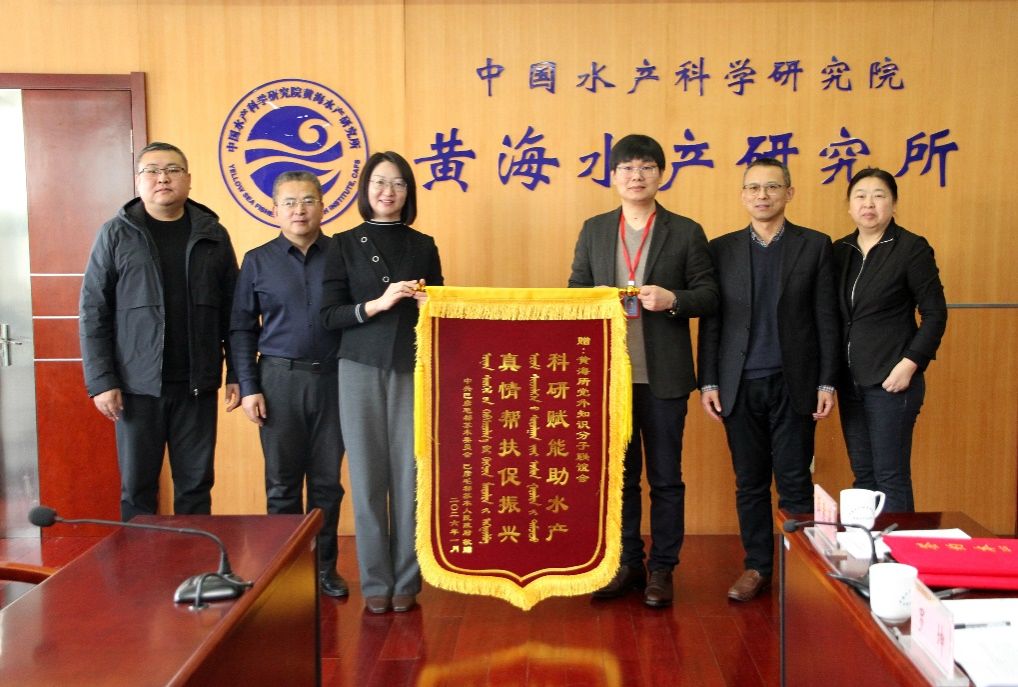 会谈期间,巴彦毛都苏木向黄海所党外知识分子联谊会致赠锦旗,对研究所在盐碱水养殖技术攻关与产业发展中给予的支持表示衷心感谢。