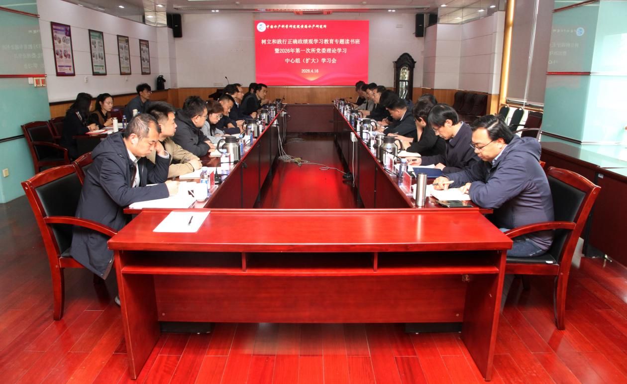 4月16日,中国水产科学研究院黄海水产研究所召开树立和践行正确政绩观学习教育专题读书班研讨暨2026年党委理论学习中心组第一次(扩大)学习。黄海所党政领导班子成员、各党支部书记以及各部门负责人参加了学习研讨,学习由纪委书记、党委委员、副所长荣小军主持。